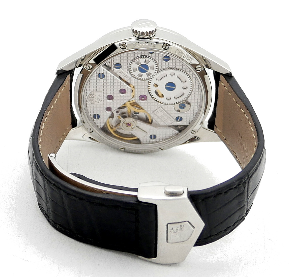 • BRACELET: Black crocodile strap.