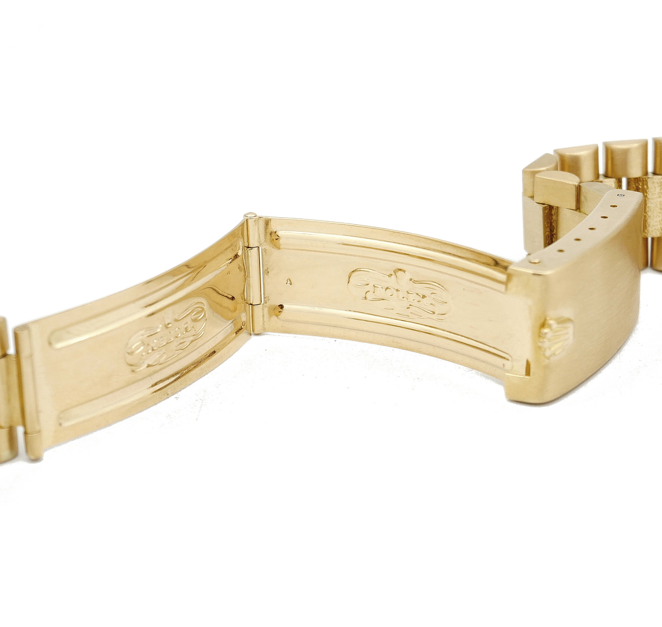 Rolex Bark Finish bracelet ref. 8209 in 18Kt gold with solid links for DayDate ref. 1807 with n ° 53 endings, letter A of 1975/76.