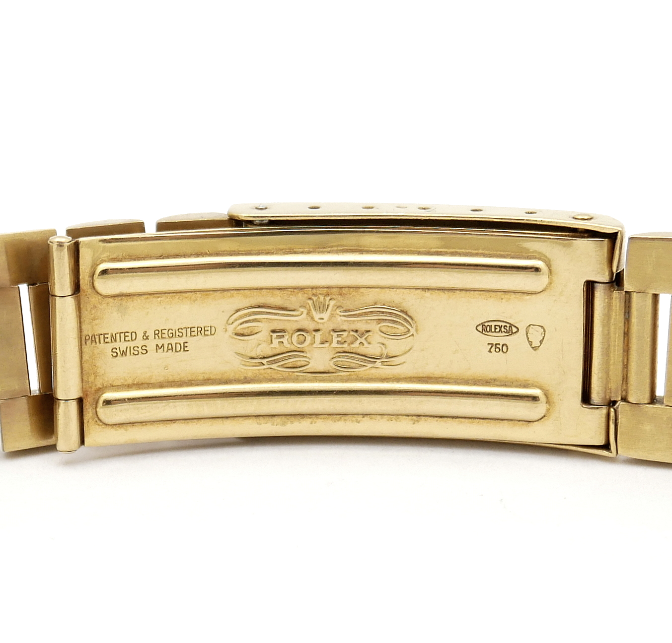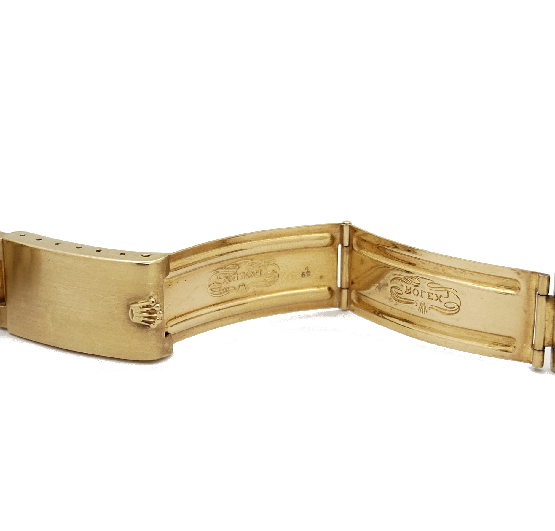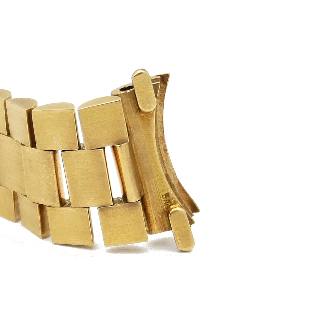 Bracciale Rolex President in oro 18Kt con chiusura a scatoletta marcata 1/69, maglie piene per orologio GMT, datato 1969/70 con finali n° 54 ansa 20.